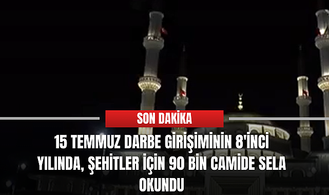 15 Temmuz darbe girişiminin 8'inci yılında, 15 Temmuz şehitleri için 90 bin camide sela okundu. Türkiye'nin her köşesinde vatandaşlar sokaklara dökülürken, saatler 00.13'ü gösterdiğinde camilerden şehitler için sela okundu.Fetullahçı Terör Örgütü'nün (FETÖ) 15 Temmuz 2016'daki hain darbe girişiminin 8'inci yılında Diyanet İşleri Başkanlığı tarafından düzenlenen program çerçevesinde, 15 Temmuz'daki hain darbe girişimi sırasında millete birlik ruhu aşılayan ve manevi bir güç sağlayan sela sesi, saat 00.13 itibarıyla Türkiye genelindeki tüm camilerden aynı anda yeniden yükseldi. Ankara'da Cumhurbaşkanlığı Külliyesinde yer alan Millet Camii başta olmak üzere Hacı Bayram-ı Veli Camii, Kocatepe Camii ve Melike Hatun Camiinden saatler 00.13'ü gösterdiğinde eş zamanlı sela sesleri yükseldi.