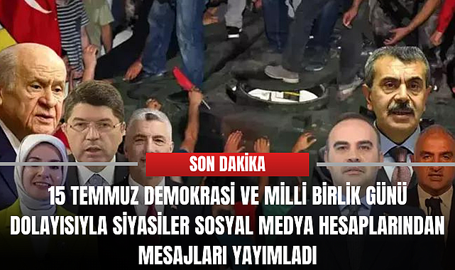 15 Temmuz Demokrasi ve Milli Birlik Günü dolayısıyla siyasiler sosyal medya hesaplarından mesajları yayımladı. Birlik ve beraberlik vurgusu yapılan açıklamalarda şehitler rahmet, gaziler saygıyla anıldı.BAHÇELİ: 15 TEMMUZ, İŞGAL GİRİŞİMİNE İMAN İRADEYLE DİRENİŞ VE DİK DURUŞ MEFKÛRESİDİRMilliyetçi Hareket Partisi Genel Başkanı Devlet Bahçeli, 15 Temmuz Demokrasi ve Milli Birlik Günü dolayısıyla sosyal medya hesabından yayımladığı mesajda, şu ifadeleri kullandı:"15 Temmuz, Millî Kahramanlığın dış bağlantılı ihanet ve işgal girişimine iman ve iradeyle direniş ve dik duruş mefkûresidir. 15 Temmuz şehitlerimize ve bilcümle bütün şehitlerimize Cenab-ı Allah'tan rahmetler niyaz ediyor, gazilerimize uzun ve sağlıklı ömürler diliyorum. 15 Temmuz Demokrasi ve Millî Birlik Günü münasebetiyle Türkiye aleyhine karanlık senaryo hazırlığı içinde olanlara sadece felaket günlerinde Türk milletinin hangi fedakârlıkları göze alacağını idrak etmelerini ikazen tavsiye ediyorum."BAKAN GÖKTAŞ: MİLLETİN ZAFERİ'Nİ NESİLDEN NESİLE AKTARACAĞIZAile ve Sosyal Hizmetler Bakanı Mahinur Özdemir Göktaş, sosyal medya hesabından yaptığı paylaşımda, "Bir hilal uğruna canlarını feda etmekten çekinmeden hain FETÖ’nün darbe teşebbüsünü göğsünde durduran kahramanlarımızı da; o karanlık gecenin nasıl aydınlığa döndüğünü de unutmadık, unutmayacağız. 15Temmuz’un ruhunu bu topraklarda her daim diri tutacak, Cumhurbaşkanımız Sayın Recep Tayyip Erdoğan'ın tarihi liderliğindeki 'Milletin Zaferi'ni nesilden nesile aktaracağız. Demokrasimize ve milli birliğimize kasteden hain darbe girişiminin yıl dönümünde aziz şehitlerimizi rahmetle yâd ediyor, gazilerimize şükranlarımı sunuyorum" dedi.BAKAN BOLAT: 15 TEMMUZ RUHUNU YAŞATMAYA DEVAM EDECEĞİZTicaret Bakanı Ömer Bolat, "15 Temmuz gecesi, aziz milletimiz şanlı tarihinden aldığı güçle, ülkemizin geleceğini hedef alan hain darbe girişimine karşı şanlı bir direniş göstermiştir. Cumhurbaşkanımız Sayın Recep Tayyip Erdoğan’ın göstermiş olduğu liderlik ve milletimizin dünyaya örnek olan engin cesaretiyle bütünleşmiş olan direniş ruhu, devletimizi, geleceğimizi, ekonomimizi, güvenliğimizi hedef alan cuntacıların ve onların arkasındaki odakların planlarının başarısızlığa mahkum olmasında büyük bir rol oynamıştır. 15 Temmuz gecesi devletimizi, kurumlarımızı, Gazi Meclisimizi, şehirlerimizi ve milletimizin iradesini hedef alan saldırılara karşı devlet-millet el ele vererek Türkiye’mizin geleceğini karanlığa sokmaya çalışan hain saldırıyı püskürttük. Bu düşüncelerle, ülkemizin bağımsızlığını ve birliğini hedef alan hain darbe girişiminin yıl dönümünde 15 Temmuz gecesi şehit olan tüm vatan evlatlarımıza Allah’tan rahmet, gazilerimize şükranlarımı sunuyorum. Ayrıca bu aziz vatan için canını feda eden tüm kahraman asker, polis ve sivil şehitlerimize şükranlarımızı sunuyor, Yüce Allah’tan gani rahmet diliyoruz. Tarih boyunca birçok zorluğun üstesinden gelen milletimiz ile el ele vererek ecdadımızın bize miras bıraktığı ülkemizi daha güçlü yarınlara hazırlamaya ve 15 Temmuz ruhunu yaşatmaya devam edeceğiz" ifadelerini kullandı.BAKAN KACIR: 15 TEMMUZ CUMHURBAŞKANIMIZ LİDERLİĞİNDE KAZANILMIŞ MİLLETİN ZAFERİ’DİRSanayi ve Teknoloji Bakanı Mehmet Fatih Kacır, yayımladığı mesajında, "15 Temmuz Türk Milletinin istiklâline ve istikbâline sahip çıkarak, kadınıyla erkeğiyle, genciyle yaşlısıyla birlikte verdiği kahramanca mücadelenin ve yazdığı destanın adıdır. Cumhurbaşkanımız ve Başkomutanımız Sayın Recep Tayyip Erdoğan’ın liderliğinde kazanılmış Milletin Zaferi’dir. Şair’in 'Asım’ın nesli diyordum ya; nesilmiş gerçek…' diye bahsettiği o nesilden, namusunu çiğnetmemek adına şehadete koşan kahramanlarımızı rahmetle, şanlı gazilerimizi minnetle anıyorum" ifadelerine yer verdi.BAKAN ERSOY: DEMOKRASİMİZİ VE MİLLÎ BİRLİĞİMİZİ HER ZAMAN KORUYACAĞIZKültür ve Turizm Bakanı Mehmet Nuri Ersoy, sosyal medya hesabından paylaştığı mesajda, "15 Temmuz, aziz milletimizin tek yürek olarak canı pahasına yazdığı bir destandır. Bu kahramanlık destanını birlik ve beraberlik ruhuyla asla unutmayacağız ve daima yaşatacağız. Türkiye Yüzyılı'nda geleceğe umutla bakarak, ülkemizi daha güçlü yarınlara taşıma kararlılığımızla demokrasimizi ve millî birliğimizi her zaman koruyacağız. 15 Temmuz Demokrasi ve Millî Birlik Günü vesilesiyle kahraman şehitlerimizi rahmetle, gazilerimizi şükran ve minnetle anıyorum" diye konuştu.BAKAN TUNÇ: ÜLKEMİZDE DARBELER DÖNEMİ BİR DAHA AÇILMAMAK ÜZERE KAPANMIŞTIRAdalet Bakanı Yılmaz Tunç, sosyal medya hesabından paylaştığı mesajında şu ifadelere yer verdi:"15 Temmuz hain darbe girişiminin 8. yıl dönümünde tüm darbeleri ve darbe girişimlerini lanetliyor; vatanımız, bağımsızlığımız ve demokrasimiz uğruna can veren aziz şehitlerimizi rahmetle anıyor, gazilerimize şükranlarımı sunuyorum. Mazisi kahramanlıklarla dolu aziz milletimizin 15 Temmuz Demokrasi ve Milli Birlik Günü’nü tebrik ediyorum. 15 Temmuz 2016’da gerçekleştirilen hain darbe girişimi, aziz milletimiz için bir dönüm noktasıdır. Darbelerle, muhtıralarla, kumpaslarla, sokak olaylarıyla amacına ulaşamayan vesayetçi zihniyet, FETÖ eliyle anayasal düzeni ve milli iradeyi yok etmek istemiş, Sayın Cumhurbaşkanımızı ve halkın oylarıyla seçilmiş hükümeti devirmeye kalkışmıştır. Aziz milletimiz, tıpkı Milli Mücadele’de olduğu gibi 15 Temmuz’da da hainlere geçit vermemiş, Cumhurbaşkanımız Sayın Recep Tayyip Erdoğan’ın çağrısıyla meydanlara akın ederek vatan ve bayrak aşkıyla yeni bir kahramanlık destanı yazm