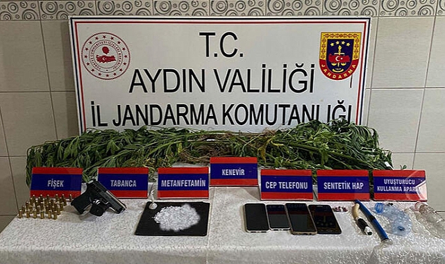 İl Jandarma Komutanlığı ekipleri, Nazilli ve Bozdoğan ilçelerinde uyuşturucu ticareti yapıldığı bilgisi üzerine çalışma yaptı. Belirlenen 11 adrese jandarma tarafından dün sabah saatlerinde eş zamanlı operasyon düzenlendi, 7 şüpheli gözaltına alındı. Evlerdeki aramalarda 5 kilo 600 gram kubar esrar, 365 gram metamfetamin, 9 gram eroin, 35 kök Hint keneviri, ruhsatsız 1 tabanca ve tüfek, 30 mermi, 5 uyuşturucu kullanma aparatı, uyuşturucu satışından elde edildiği değerlendirilen 15 bin 640 TL, 2 hassas terazi ve 9 cep telefonu ele geçirildi. Jandarmadaki işlemleri sonrası adliyeye sevk edilen şüphelilerden V.O., H.K., U.A., O.A., H.E. ve S.B., 'Uyuşturucu ticareti yapmak' suçundan tutuklandı, 1 şüpheli ise adli kontrol şartıyla serbest bırakıldı. Aynı zamanda Ç.M.G. ve M.Ç.'nin de daha önce bu operasyonla ilgili yakalanıp tutuklandıkları öğrenildi.