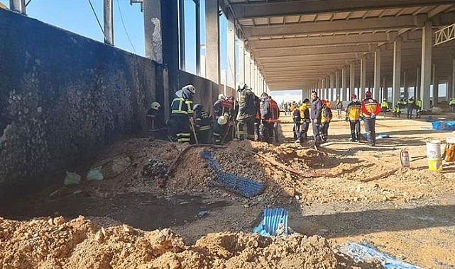 2 işçi tutuşan malzemelerin üzerine düştü; kepçeyle atılan toprağın altından cesetleri çıktı