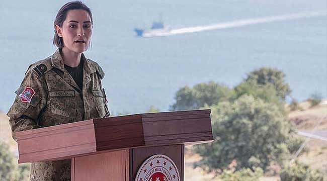 MSB Basın ve Halkla İlişkiler Tanıtım Subayı Deniz Yüzbaşı Burcu Naliç Yokuva, İzmir'de EFES-2022 Tatbikatı'nın gerçekleştirildiği bölgede düzenlenen basın toplantısında, terörle mücadele başta olmak üzere bakanlığın faaliyetlerine ilişkin açıklama yaptı.