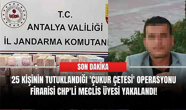 Antalya'nın Kemer ilçesinde geçen yıl aralık ayında 25 kişinin tutuklandığı 'Çukur Çetesi' operasyonunun firarisi CHP'li belediye meclis üyesi C.A., jandarma operasyonuyla yakalandı.