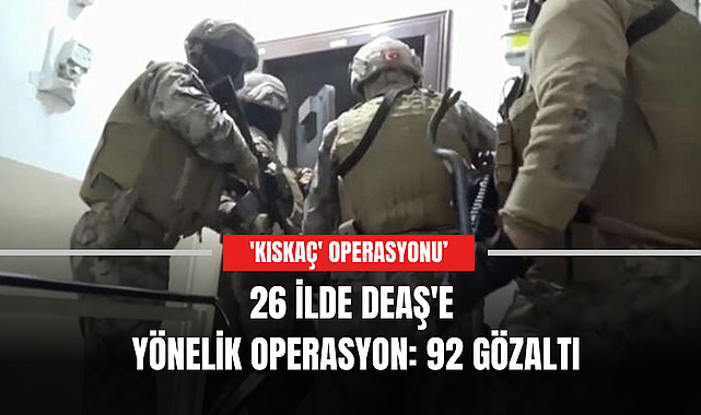 İçişleri Bakanı Ali Yerlikaya, DEAŞ'e yönelik 26 ilde eş zamanlı düzenlenen 'Kıskaç' operasyonunda 92 şüphelinin gözaltına alındığını açıkladı.