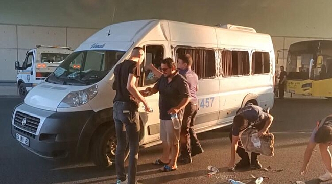 3 aracın karıştığı kazada servis minibüsü devrildi