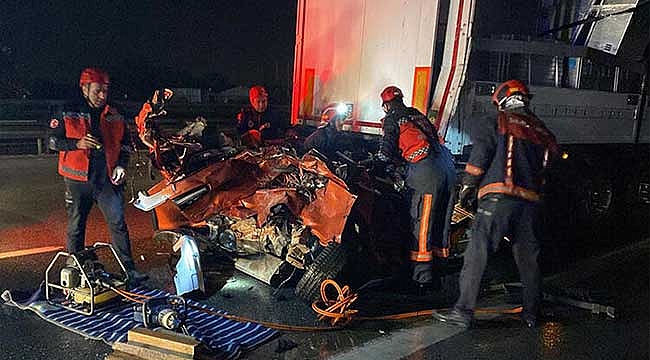 Arkadan gelen İ.Y yönetimindeki otomobil, TIR'ın altına girdi. Sürüsünün ismi öğrenilemeyen 06 BD 8709 plakalı TIR da kazaya karıştı. TEM Otoyolu İstanbul istikameti ulaşıma kapandı. Haber verilmesi üzerine olay yerine polis ve sağlık ekipleri geldi. Kazada otomobilde bulunan T.Y.'nin (39) yaşamını yitirdiği belirlendi. Yaralanan otomobil sürücüsü ile TIR'larda bulunan 2 kişi sağlık ekiplerinin müdahalesi sonrasında hastanelere kaldırıldı. Cumhuriyet Savcısının olay yerinde yaptığı inceleme sonrasında T.Y'nin cenazesi morga götürüldü. Kaza yapan araçların yoldan kaldırılmasının ardından yol ulaşıma açıldı. Polis kazayla ilgili soruşturma başlattı.