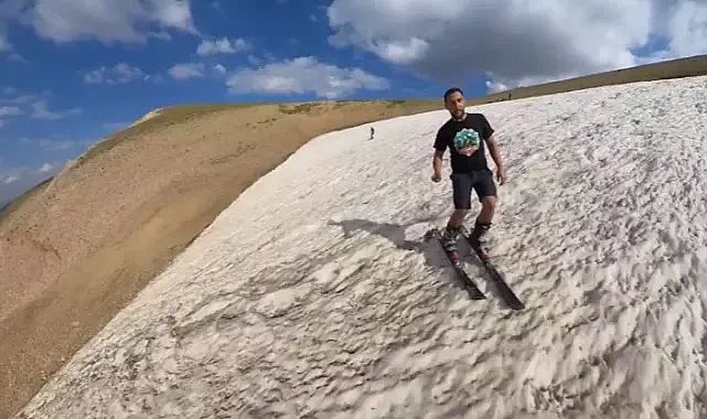 Hava sıcaklığının gölgede 36 dereceyi bulduğu Erzincan’da, 4 arkadaş Munzur Dağları'nın 3 bin 300 rakımlı zirvesine çıkıp kayak ve snowboard yaptı.Erzincan'da yaşayanlar, serinlemek için farklı yöntemler geliştiriyor. Kayak antrenörü Canser Atila (35) ile arkadaşları Recep Sulu (38), Özkan Arduç (38), Alperen Mazlum (28), gölgede 36 dereceyi bulan sıcaklıkta serinlemenin yolunu 3 bin 300 rakımlı Munzur Dağları'nda buldu. Ergan Dağı Kayak Merkezi'nin de bulunduğu Munzur Dağı'na çıkan 4 arkadaş, sıcağa rağmen erimeyen kar kütlelerinde şortlarıyla kayak ve snowboard yaptı. Gün boyu kayağın keyfini çıkaran arkadaşlar, serinlemek isteyenleri Munzur Dağı'na davet etti.Kayak antrenörü Canser Atila, “Erzincan merkezde sıcaktan bunaldığımız için arkadaşlarımız ile birlikte cross motorlarımıza atlayıp Ergan Dağı Kayak Merkezi'nin zirvesine çıktık. Ağustos ayında bile erimeyen karın üzerine şortlarımızla çıkarak çok eğlenceli dakikalar geçirip kayak keyfi yaptık" diye konuştu.Munzur Dağı'nın zirvesinde snowboard yapan Alperen Mazlum, “Munzur sıra dağlarında ağustos ayında bile erimeyen kar kütleleri var. Mükemmel bir deneyim sunuyor bize. Erimeyen kar üzerinde yazın sıcak havalarda keyifli dakikalar geçiriyoruz" dedi