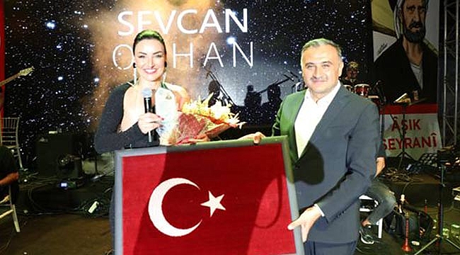 Sevcan Orhan ve Tuğba Çimencan’a 38. Uluslararası Âşık Seyrani Kültür ve Sanat Festivali’ne teşriflerinden dolayı teşekkürlerini ileten Cabbar Başkan sanatçılara teşekkür plaketi, katılım belgesi, kilim ve Türk Bayrağı takdim ettikten sonra “Muhteşem bir başlangıç ve birbirinden güzel konserlerle festivalimizde ikinci gün etkinliklerimizi de tamamladık. Böylesi güzel bir gece yaşattıkları için sahne alan usta sanatçı Sevcan Orhan’a ve Tuğba Çimencan’a çok teşekkür ediyorum. Festivalimiz bundan sonra da birbirinden güzel etkinlik ve sevilen sanatçıların konserleriyle devam edecek. İnşallah yarın yine bu alanda siz kıymetli hemşerilerimizle buluşacağız” dedi.
