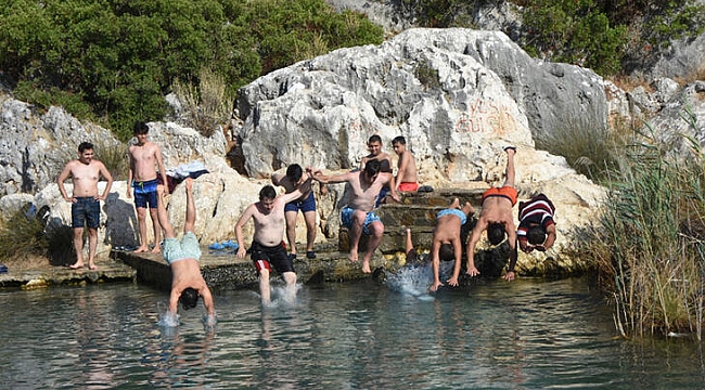 Antalyalılar son günlerde yoğun nemle birlikte 50 derece hissedilen sıcakta kavrulurken, Demre ilçesine gelenler Çayağzı Limanı'nın sağında ve solunda yer alan, sıcaklığı yaz- kış 12-13 derece civarındaki soğuk su kaynaklarında serinliyor.Demre'nin Çayağzı Limanı'na giderken, yolun sağında ve solunda şifalı olduğuna inanılan buz gibi sular akıyor. Kayalar arasından, her yerde soğuk ve kükürtlü su fışkırıyor. Suyun sıcaklığı yaz- kış 12-13 derece civarında. Bu günlerde bölgede hava sıcaklığı, yoğun nemle birlikte 50 dereceye yakın hissediliyor. Demreliler ve ilçeye tatile gelenler soluğu soğuk suda alıyor. Çayağzı Limanı'nın sağında ve solunda yer alan soğuk su kaynakları gün boyu dolup, boşalıyor. Çevre ilçeler Finike, Kumluca ve Kaş'tan da vatandaşlar, özellikle hafta sonları, soğuk suda serinlemek için geliyor.