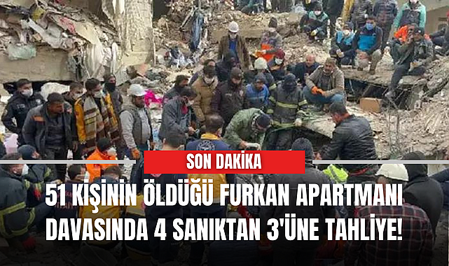 Kahramanmaraş merkezli depremlerde yıkılan ve 51 kişinin hayatını kaybettiği Gaziantep'in Nizip ilçesindeki Furkan Apartmanı davasında tutuklu yargılanan 4 sanıktan 3'ü tahliye edildi. Mahkeme heyeti ayrıca firari müteahhit Abdullah Devrim S. ile kardeşi Hasan Hüseyin S hakkındaki çıkarılan kırmızı bültenli yakalama emrinin devamına karar verdi.