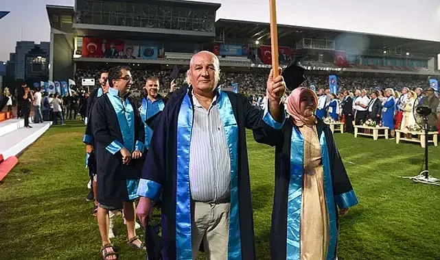 Konuşmaların ardından başarılı öğrencilere plaket verildi, yaş kütüğüne isimlerinin yazılı olduğu levhalar çakıldı. Plaket verilen anlarda, stattaki ekranlardan A Milli Takımı'n Avusturya ile karşılaştığı Avrupa Futbol Şampiyonası maçı yayınlandı. Törendeki öğrenciler stadyumun çimlerinde, velileri de tribünden maçı izledi.Mezunlar arasında öğrenimini tamamladığı yüksekokulun adı yazılı dövizi taşıyan Ali Demirel dikkati çekti. 7 yaşında ilkokula başlamasının ardından 59 yıl boyunca sadece 2000 ile 2006 yılları arasında öğrenime ara verdiğini anlatan Demirel, 5 üniversite bitirdiğini anlattı. Evli ve 2 çocuk babası olduğunu ifade eden Demirel, yeniden üniversite sınavına girdiğini belirtti.VAKTİNİ SIKILMADAN GEÇİRMEK İÇİN OKUDU