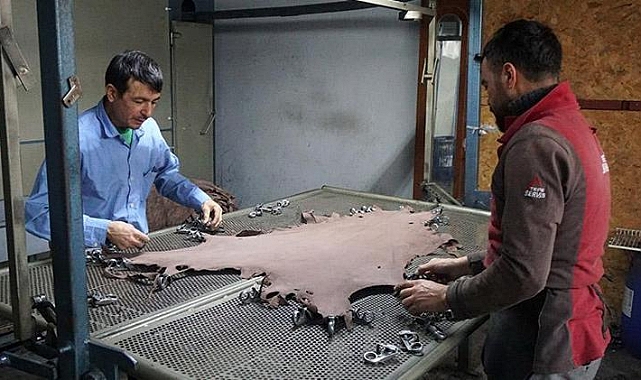 Ülkemizin aşağı yukarı yıllık 5 milyar dolar civarı ihracat hacmi var. Biz de onlara alt-ara ürünleri temin ediyoruz. İşin yoğunluğuna göre sezonluk 500 ile 1000 kişi arasında istihdam sağlanmaktadır. Kış sezonu için farklı modellerle, yaz sezonu için de açık renkli ayakkabı ve terlik için ara ürün yapmaktayız. Organize Sanayi Bölgemizde günlük 15- 20 milyon liralık üretim yapılmaktadır" dedi.DERİNİN İŞLENME AŞAMASINI ANLATTI