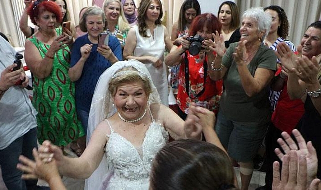 83 yaşında gelinlik giyip, damatsız düğünde çiftetelli oynadı