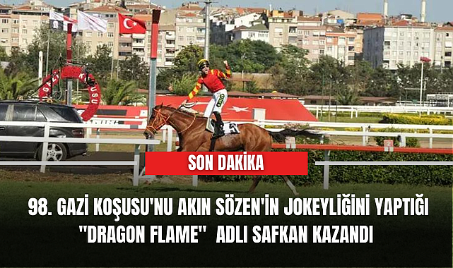 98’inci Gazi Koşusu’nu Akın Sözen’in jokeyliğini yaptığı Dragon Flame adlı safkan 2:38:36’lık derecesiyle kazandı.Gazi Mustafa Kemal Atatürk adına 98 yıldır aralıksız olarak gerçekleştirilen Gazi Koşusu, Veliefendi Hipodromu'nda 3 yaşlı 22 safkan İngiliz tayının katılımıyla 2 bin 400 metre çim pistte gerçekleştirildi. Koşuyu; Türkiye Jokey Kulübü Başkanı Serdal Adalı, İBB Başkanı Ekrem İmamoğlu, Fenerbahçe Kulübü eski başkanı Aziz Yıldırım, Fenerbahçe Kulübü Yüksek Divan Kurulu Başkanı Şekip Mosturoğlu ile bir çok yarışsever izledi.Türk atçılığının derbisi niteliğindeki Gazi Koşusu, büyük heyecana sahne oldu. Yarışı Emrah Agun’un sahibi olduğu, Akın Sözen’in jokeyliğini yaptığı Dragon Flame isimli safkan, 2:38:36’lık derecesiyle kazandı. 98’inci Gazi Koşusu’nda 2’nciliği Zizka, 3’üncülüğü Borrego elde ederken, yarışı Son of Cooger isimli safkan 4’üncü sırada tamamladı.Öte yandan jokey Akın Sözen, Dragon Flame ile kariyerinde ilk kez Gazi Koşusu'nu kazandı.