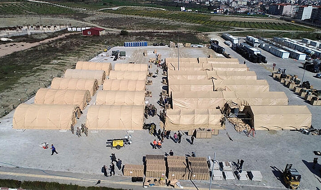 Kahramanmaraş merkezli depremlerin ardından Türkiye'ye gelen ABD askerleri, Hatay Mustafa Kemal Üniversitesi bahçesine 100 yataklı, acil servisi ve 2 ameliyat odası bulunan sahra hastanesini kuruyor. ABD Deniz Kuvvetleri'nden Yarbay Jeffrey Castiglione, "Hastanenin kurulumu bittikten sonra Türk Sağlık Bakanlığı'na devredeceğiz" dedi.