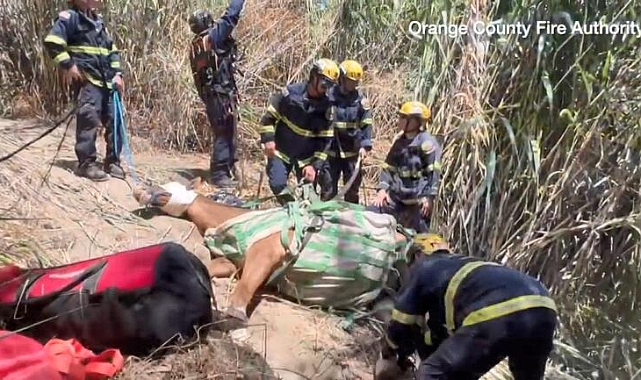 Olay, Kaliforniya eyaletindeki Orange ilinde meydana geldi. Sahibi tarafından yürüyüşe çıkarılan 25 yaşındaki Sobe adlı at, kırsal alanda bulunan bir yokuştan düşerek yaralandı. Olay yerine gelen itfaiye ekipleri ve veteriner, ata ilk müdahaleyi yaptı. Yerinden kalkamayan at, helikopterle sağlık merkezine götürüldü. Orange County İtfaiye Departmanı’ndan yapılan açıklamada, “Ekipler atı çıkarmak için bir veterinerle birlikte çalıştı. İlk girişimin ardından helikopterle çıkarılması gerektiği belirlendi. Bu gibi kurtarmalar için eğitilmiş olan Teknik Kurtarma İtfaiyecilerimiz, Sobe'yi kurtarma işlemi için hazırladı. Kurtarma başarılı oldu ve yakındaki Shea Center'daki personel tarafından muayene edildi. Sobe'nin kendi başına ayağa kalktığını bildirmekten mutluluk duyuyoruz” denildi.