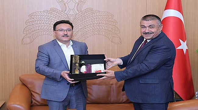 Kayseri Ziraat Odaları İl Koordinasyon Kurulu Başkanı Abdulkadir Güneş, ilçe Ziraat Odası başkanları ile birlikte Kayseri Valisi Gökmen Çiçek’e hayırlı olsun ziyaretinde bulundu.
