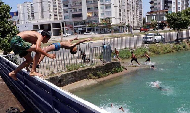 Merkez Yüreğir ilçesindeki sulama kanalında arkadaşlarıyla yüzen Şaban Demir (14), sıcaklardan dolayı çok bunaldıklarını belirterek, “Mahallede terledikten sonra buraya gelip yüzüyoruz.