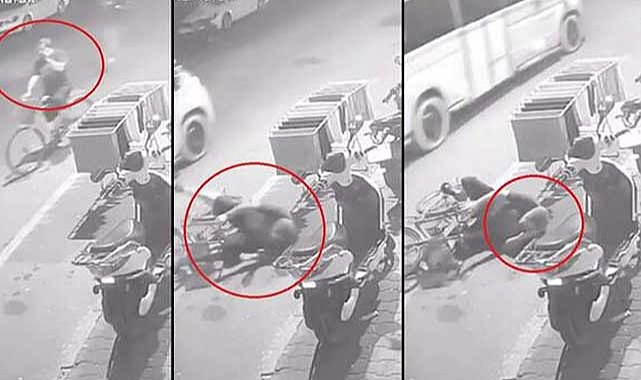 Adana'da cep telefonuyla konuşarak giden bisikletli, dengesini kaybedip düştü. O anlar güvenlik kamerasına yansırken, çevredekilerin yardımıyla ayağa kaldırılan bisikletlinin telefonu bırakmayıp konuşmasına devam ettiği görüldü.
