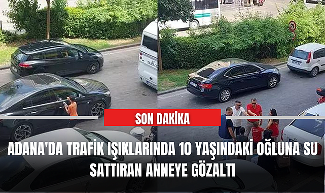 Adana'da trafik ışıklarında 10 yaşındaki oğluna su sattıran anneye gözaltı