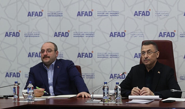 Cumhurbaşkanı Yardımcısı Fuat Oktay'ın başkanlığında AFAD Koordinasyon Merkezi'nde gerçekleştirilen toplantıya Sanayi ve Teknoloji Bakanı Mustafa Varank, AFAD Başkanı Yunus Sezer ile bazı bakan yardımcıları katıldı. Toplantıda, 24 saat esasına göre yürütülen çalışmalar ve mevcut duruma ilişkin bilgilerin yer aldığı sunum eşliğinde, bakanlıkların ve ilgili kurumların verdikleri hizmet ve destekler ele alındı. Depremden etkilenen bölgede tahliye, barınma, çadır ve konteyner kent, beslenme, enerji, haberleşme ve iletişim, ulaştırma ve altyapı konularının değerlendirildiği toplantıda, depremzedeler için sağlanan ödenek ve destekler, konutların hasar durumu, içme suyu arz durumu üzerinde duruldu. Toplantıda, şehirlerin yeniden inşa ve ihyasına yönelik yürütülecek faaliyetler, depremden etkilenen organize sanayi bölgeleri ile küçük sanayi sitelerinin en kısa sürede yeniden hizmete başlaması için yapılması gerekenler görüşüldü.