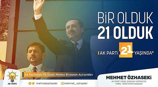 AK Parti Genel Başkan Yardımcısı ve Yerel Yönetimler Başkanı Mehmet Özhaseki, AK Parti kuruluşunun 21. yılı nedeni ile bir mesaj yayımladı.