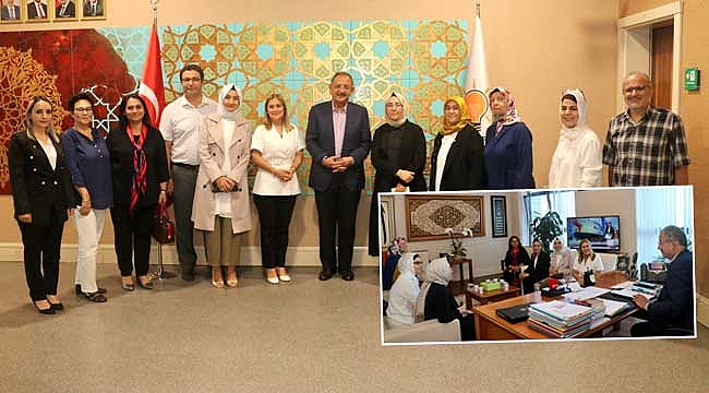 AK Parti Genel Başkan Yardımcısı ve Yerel Yönetimler Başkanı Mehmet Özhaseki, AK Parti Kayseri İl Kadın Kolları Başkanı Emine Timuçin ve yönetimini makamında ağırladı.