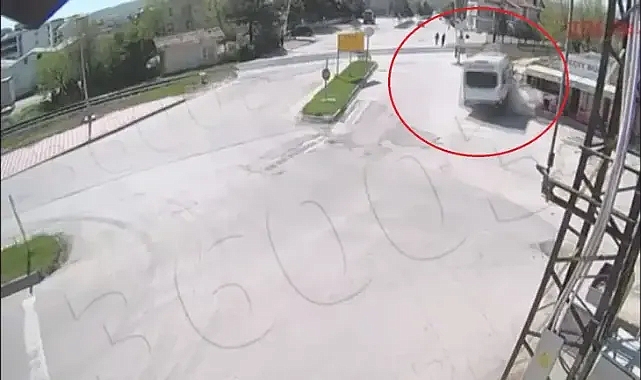 Amasya'nın Suluova ilçesinde alkollü sürücünün kullandığı servis minibüsü, hemzemin geçit yakınında kaldırıma çarparak durağı devirdi. Kazadan saniyeler önce hemzemin geçitten geçen 2 öğrenci, faciadan son anda kurtuldu. O anlar, güvenlik kamerasına yansıdı.