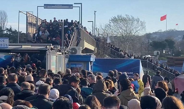 Üsküdar Altunizade’de arızalanan metrobüs nedeniyle seferler aksadı. Üst geçitlerde başlayan yoğunluk nedeniyle duraklara ulaşmakta güçlük çeken yolcular, metrobüse binmekte de zorlandı.