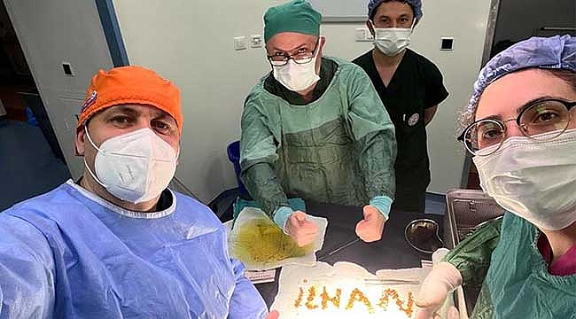 Zonguldak Bülent Ecevit Üniversitesi Tıp Fakültesi Hastanesi'nde ameliyat edilen Nermin A.’nın (47) safra kesesinden 1250 tane taş çıkarıldı. İlk defa bu kadar çok taşa denk geldiğini belirten Dr. İlhan Taşdöven, taşlarla kendi ismini yazdı.