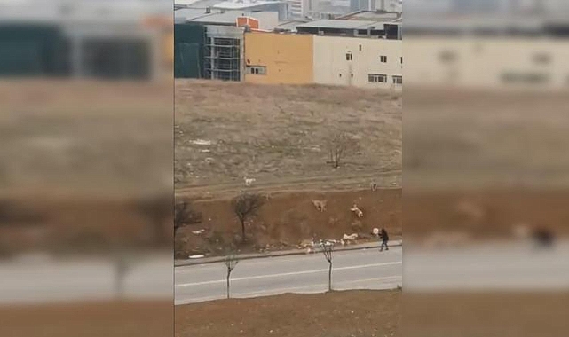 Olay, Yenimahalle ilçesinde Şehit Süleyman Şahin Caddesi'nde meydana geldi. Caddede kaldırımda yürüyen bir kişi, 9 köpekten oluşan başıboş bir sürünün saldırısına uğradı. Köpeklerin saldırısıyla kaçmaya çalışırken ayağı tökezleyip yere düşen kişi, kendisini savunmaya çalıştı. Çabalarına rağmen köpeklerin saldırısıyla kol ve bacaklarında ısırık yaraları oluşan kişi, güçlükle ayağa kalkıp, koşarak bölgeden uzaklaştı. AYNI CADDEDE İKİNCİ KÖPEK SALDIRISINDA YERDEN ALDIĞI CİSİMLE KENDİNİ SAVUNDUBaşıboş köpekler, yine aynı cadde üzerinde yürüyen bir kişiye daha saldırmaya çalıştı. Caddeden geçen adam elindeki poşetler ve yerden aldığı cisimlerle kendini köpeklerden korumaya çalıştı. O anlar çevrede bulunan bir kişinin cep telefonu kamerasıyla saniye saniye kaydedildi.