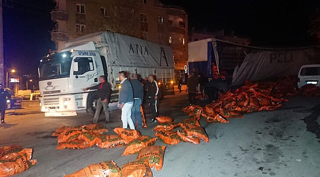 Ankara'da freni patlayan kömür yüklü TIR 3 araca çarparak durabildi. Araçların hasar gördüğü kazada TIR'da bulunan kömür çuvalları yola savruldu.