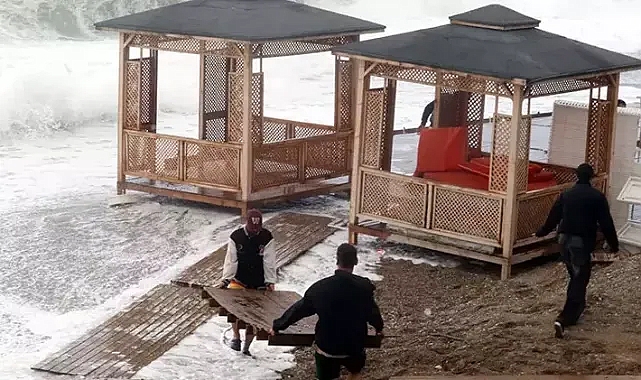 Meteoroloji Genel Müdürlüğü'nün (MGM) fırtına ve yağış uyarısı yaptığı Antalya'da etkisini gösteren fırtına ve yağmur hayatı olumsuz etkiledi. Fırtına nedeniyle Antalya'nın dünyaca ünlü Konyaaltı Sahili'nde buluna işletmenin çalışanları şezlong ve masalarını korumaya çalıştı.