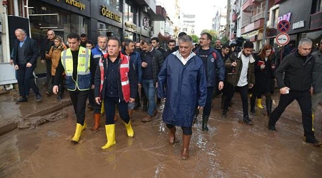 VALİ YAZICI: HER ÇAĞRIYA ULAŞILDIAntalya Valisi Ersin Yazıcı, Kumluca ilçesindeki sel felaketine ilişkin ekiplerin tüm çağrılara anında ulaştığını kaydetti. Vali Yazıcı, "Koordinasyon halinde çalışmalara başladık ve an itibarıyla ilçe merkezimizde sular çekilmiş durumda. Ortaköy ve Toptaş köylerimizin yollarındaki köprülerin yıkılmasından dolayı ulaşımda sıkıntılar yaşansa da belediye, DSİ ve Karayolları Bölge Müdürlüğü ekiplerimizin yoğun çalışmaları ile alternatif güzergahlarla ulaşımı sağlamaya çalışıyoruz. Yaşanan yoğun yağış sonrası ivedilikle kriz masası oluşturduk. Vatandaşlarımızın tarım arazilerinde, seralarında, ev ve iş yerlerinde meydana gelen hasar tespit çalışmalarına gün içinde başlayacağız" dedi. BAŞKAN BÖCEK: 10 KÖPRÜ AFETTEN ZARAR GÖRDÜAntalya Büyükşehir Belediye Başkanı Muhittin Böcek, Kumluca Belediye Başkanı Mustafa Köleoğlu ve Finike Belediye Başkanı Mustafa Geyikçi, Finike ilçesinde incelemelerde bulunup, ardından toplantı düzenledi. Toplantı sonrası DHA'ya konuşan Başkan Böcek, "Gece 01.15 sıralarında 473 ihbar alarak görevimize başladık. İtfaiyeye yapılan müracaatlar sonucunda hemen daire başkanı haber verdi ve Kumluca Belediye Başkanımızla görüştük ve bütün ekibimizi seferber ettik. Şu an ihbar sayısı 885'e ulaştı. 501 personelimizle 444 araç ve gerecimizle hep birlikte tüm birimlerimiz burada. Burada özellikle Toptaş Mahallemizde 2 köprü yıkıldı, Ortaköy'de 3 köprü yıkıldı ve 5'i de hasar gördü. Kısacası; 10 köprü bu afetten zarar gördü" dedi. 2 İTFAİYE ARACI SU ALTINDA KALDI15 bin dekara yakın narenciye ve örtüaltı seranın hala su içerisinde olduğunu belirten Başkan Böcek, "Antalya Büyükşehir Belediyesi itfaiyesi, 2 araçla vatandaşımızı kurtarmaya gittiğinde su altında kaldı. Çocuklarımız kendini kurtardı. Şehir merkezimizde bütün esnafımızın bodrum katları suyla dolu. Kumluca Belediyesi'nin otoparkta 245 aracı, vatandaşlarımızın araçları ve belediyelerimiz araçları su altında. 250 kilograma yakın bir yağışın olması dolayısıyla kötü bir afet yaşadık" diye konuştu.'SİYASET ÜSTÜ YARDIMLAŞMA'Belediyelerin iş birliğiyle tüm kurum ve kuruluşların bu bölgede olduğunu aktaran Böcek, "Vatandaşların emrindeyiz. Vatandaşlarımızın yanında olup, tüm yaralarını çözeceğiz. Başka DSİ olmak üzere tüm kurum ve kuruluşlar burada. Bununla ilgili olarak bizim kendi birimlerimiz, üreticilerin tarımsal anlam ve sosyal yardımlaşmayla ilgili desteklerimizle hepsini çözeceğiz. Kısa zamanda iktidarı ve muhalefetiyle birlikte siyaset üstü yardımlaşmasını herkes yapıyor. Allah razı olsun teşekkür ederim" dedi.'25 SENENİN EN FELAKET GÜNÜ'Sel felaketiyle birlikte portakal bahçeleri de su altında kaldı ve ürünlerin büyük bölümü zarar gördü. İskele Mahallesi'nde oturan çiftçi Nedim Yüzbaşıoğlu (61), 25 senenin en felaket gününü yaşadıklarını anlattı. Bağ ve bahçede hiçbir ürün kalmadığını belirten Yüzbaşıoğlu, "Ahırlarımız, istinat duvarlarımız göçtü. Bahçelerimizde hasat zamanıydı. Selle birlikte felaket oldu. Dereler taştı. Köprünün üzerinden geçti. Bahçeler balçık ile doldu. Yaklaşık 60 santim yüksekliğinde balçık var. Kullanılamaz hale geldi. Ürünler telef oldu. Birazını hasat etmiştik. Fakat hasat edemeyenlerin ürünleri de mahvoldu" dedi.