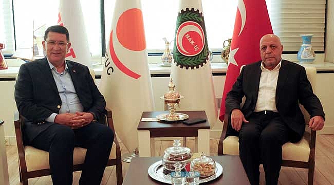 HAK-İŞ Genel Başkanı Mahmut Arslan, TESK Yönetim Kurulu Üyesi ve Antalya Esnaf ve Sanatkarlar Odası Başkanı Adlıhan Dere’yi HAK-İŞ’te ağırladı.