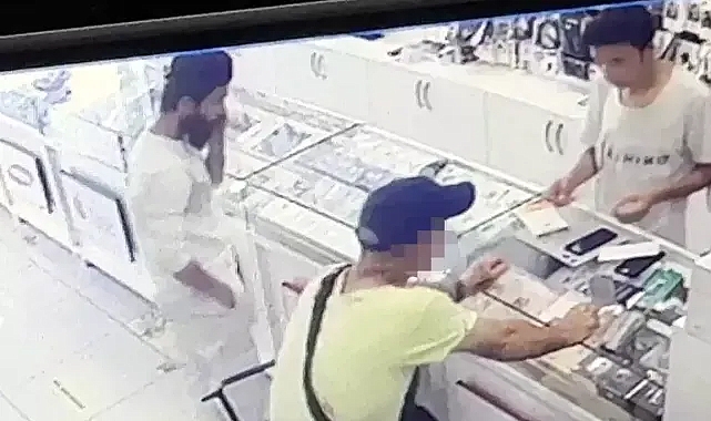 Olay, cumartesi günü Mustafa Kemal Paşa Mahallesi'nde bulunan telefon bayisinde yaşandı. Erdal Tambahçeci'ye ait telefon bayisine gelen yabancı uyruklu bir kişi, 'Telefonum çalındı, aldığım hatta uygun cihaz almak istiyorum' dedi. Tezgahtarın gösterdiği 3 bin lira tutarındaki telefonu beğenen ve yanındaki SİM kartını taktıran şüpheli, telefonu kurcalamaya, birkaç yeri arayarak konuşmaya başladı. Tezgahtar, gelen diğer müşterilerle ilgilenirken, yabancı uyruklu kişi beğendiği telefonla konuşarak kapıya yöneldi. Şüpheli daha sonra hızla uzaklaştı.İş yeri sahibi Erdal Tambahçeci, "Telefonunun çalındığını söyleyerek bizden yardımcı olmamızı istedi. Telefon alacağını söyledi. 3 bin liralık telefona hat taktırıp, bizi 10 dakika kadar oyalayarak, sağı solu arayarak, dikkatimizi dağıtarak, telefonu alıp kaçtı. Yabancı uyruklu, sakallı, beyaz giysili biri. Başka telefoncular mağdur olmasın diye görüntüleri sizin aracılığınızla paylaştım. Bu kişiyi görenler bize haber versin" dedi.