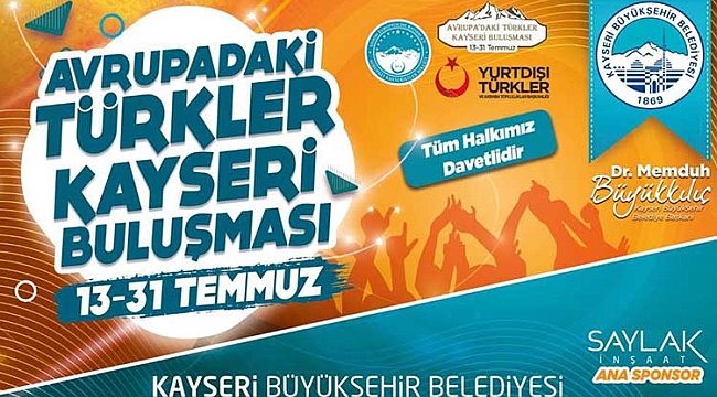 Gerçekleşecek etkinlikte mehteran gösterileri, çocuk tiyatroları, yarışmalar, spor etkinlikleri, dinletiler, söyleşiler gibi faaliyetler yer alacak. Kayseri Büyükşehir Belediyesi tarafından gerçekleştirilecek, 13 Temmuz Çarşamba günü başlayacak olan Avrupa’daki Türkler Kayseri Buluşması etkinlikleri 31 Temmuz Perşembe gününe kadar devam edecek.