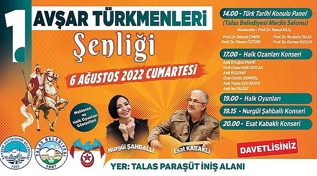 Avşar Türkmenleri, Büyükşehir ve Talas Belediyeleri ile Dünya Avşarlar Derneği tarafından ortaklaşa düzenlenecek şenlikte bir araya geliyor.