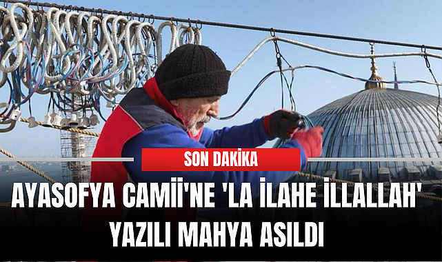 Ayasofya Camii'ne 'La İlahe İllallah' yazılı mahya asıldı