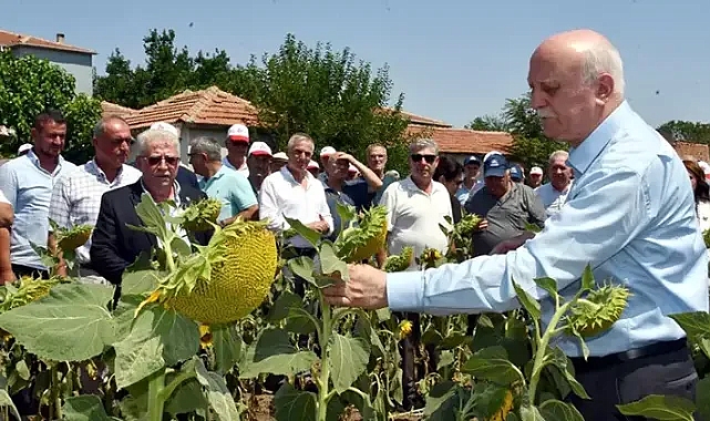 ayçiçeği tarlasında da inceleme yaptı. Ergene Belediye Başkanı Müge Yıldız Topak ve Çorlu Ziraat Odası Başkanı Ali Topuz ile üreticilerin de katıldığı incelemenin ardından açıklama yapan Bayraktar, ayçiçeğinin üretiminin yüzde 35'ini Trakya'nın karşıladığını belirtti. Bayraktar, "Çok önemli bir ürünümüz. Yüzde 40-45'ini yağ olarak temin ediyoruz. Türkiye’de yağ tüketiminin yüzde 80’ini de yine ayçiçeği yağı olarak tüketiyoruz. Tabii son iki yıla baktığımızda 2023 ve 2024 yıllarına değerlendirdiğimizde 2,5 milyon ton olan üretimimizin 2,2 milyon tona düştüğünü görüyoruz. Kuru alanda ayçiçeği üretimi yapıyoruz en büyük sıkıntımız bu, ayçiçeğini sulama imkanımız yok. Geçen yıl ayçiçeği üretimimiz kuraklık etkilendi" dedi.