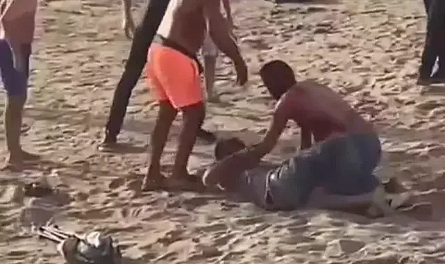 Aydın’ın Kuşadası ilçesinde, tatilciler arasında plajda bıçaklı kavga çıktı. Olayda iki kişi yaralanırken, kavga anı bir vatandaş tarafından görüntülendi.Olay, saat 18.30 sıralarında Atatürk Bulvarı'ndaki Engelliler plajında çıktı. İbrahim G. (46) ile Ercan P.(44) arasında henüz belirlenemeyen nedenle tartışma çıktı. İkili arasındaki gerginliğin kısa sürede büyümesi üzerine Ercan P., bıçakla İbrahim G.'ye saldırdı.Vücudunun çeşitli yerlerinden yaralanan İbrahim G., yaşanan arbede sırasında eline geçirdiği bıçakla bu kez Ercan P.’yi yaraladı. Yaşanan olay ise bir vatandaş tarafından saniye saniye görüntülendi.Kavgada ağır yaralanan 2 kişi, çevredekilerin ihbarı ile gelen sağlık ekiplerinin ilk müdahalesinin ardından ambulansla Kuşadası Devlet Hastanesi'ne kaldırıldı. İki yaralının da hayati tehlikesinin bulunduğu öğrenildi. Polis, olayla ilgili soruşturma başlattı.