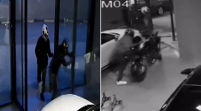 Olay, Bağcılar Batışehir'de dün sabah 06.00 sıralarında yaşandı. Ürdün asıllı Türk vatandaşı Mohannad Obaid'e ait oto galeriye motosikletli iki kişi geldi. Başlarında kask ve eldiven olan iki şüpheli kapıyı kırarak içeri girdi. Özel üretim ve 600 bin lira değerinde olduğu belirtilen spor motosikleti çalan şüpheliler kaçtı. Hırsızlık anları iş yerinin güvenlik kamerasına yansıdı. "HİÇ BİR ŞEKİLDE İZ YOK" İş yeri çalışanı Hamit Yurdakul, "Buraya girip çıkmaları bir dakika sürüyor. Motoru alıp götürüyorlar. Olay yeri inceleme ekipleri parmak izi almak için geliyor fakat adamlar profesyonel olduğundan hiç bir şekilde iz yok. Motorun ortalama değeri 600 bin lira civarında. Düşük kilometreli bir motosiklet. Bunlar sayılı motosiklet. Özel yapımı bir motor. İşin enteresan tarafı anahtarla çalıştırıp gidiyorlar. Anahtarın bütün kopyaları bizde. 4. bir anahtar yapılmış. Bu motosikletler fabrika çıkışı 3 anahtarla geliyor fakat 4. bir anahtar yapılmış. Anahtarı nerden bulduklarını bilmiyoruz. Motosikleti bize getirene ödül vereceğiz." dedi.