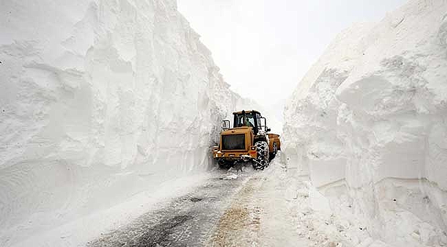 kar kalınlığının 8 metreyi bulduğu köy yolunu ulaşıma açmak için çalışıyor.