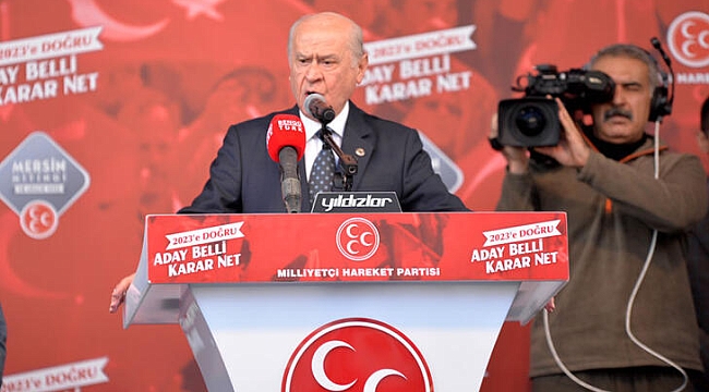 MHP Genel Başkanı Devlet Bahçeli, partisinin Mersin’deki Millet Bahçesi yanında düzenlediği '2023'e Doğru: Aday Belli, Karar Net' temalı açık hava toplantısna katıldı. Bahçeli, “Başı Toroslar kadar dik, gönlü Mavi Vatan kadar engin Mersin’i ve Mersinli kardeşlerimi gönülden selamlıyorum” diyerek mitinge katılanları selamladı.2023 yılının sandık yılı olduğunu dile getiren Bahçeli, vatandaşlardan Cumhur İttifakı’na oy istedi. Cumhuriyetin 100’üncü yılına vurgu yapan Bahçeli, “Gelin bu tarihi görevde sizin de payınız olsun. Hainlere, arsızlara, namussuzlara, tefecilere, tezgahçılara, sömürge teşrifatçılarına, yağmacılara, düzenbazlara, istismarcılara, inkarcılara, işbirlikçilere, soysuzlara, ruhunu satmış namertlere karşı bir olalım, diri olalım, el ele verip hep birlikte Türkiye gibi duralım. Kızılelma ülküsüyle kenetlenelim. 2023 bu söylediklerimin hepsi için bir kader ve karar yılıdır” ifadelerini kullandı.