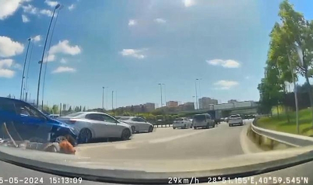 Kaza, dün saat 15.00 sıralarında D-100 Karayolu Yenibosna mevkiinde meydana geldi. İddiaya göre Edirne istikametine ilerleyen otomobil şerit değiştirmek istediği sırada, aynı yönde ilerleyen motosiklete çarptı. Çarpmanın etkisiyle yere düşen motosiklet sürücüsü, yan yoldan gelen aracın altında kalmaktan son anda kurtuldu. Otomobil sürücüsü frene bastığı sırada, araç içi kamerasıyla o anları da kaydetti.Görüntülerde motosikletin sağ şeritte ilerlediği, şerit değiştirmek isteyen otomobilin motosiklete çarptığı anlar görülüyor. Çarpmanın etkisiyle yere düşen sürücü yan yoldan gelen otomobilin altında kalmaktan son anda kurtuluyor. Frene basan otomobil sürücüsü, o anları araç iç kamerasıyla da saniye saniye kaydediyor.