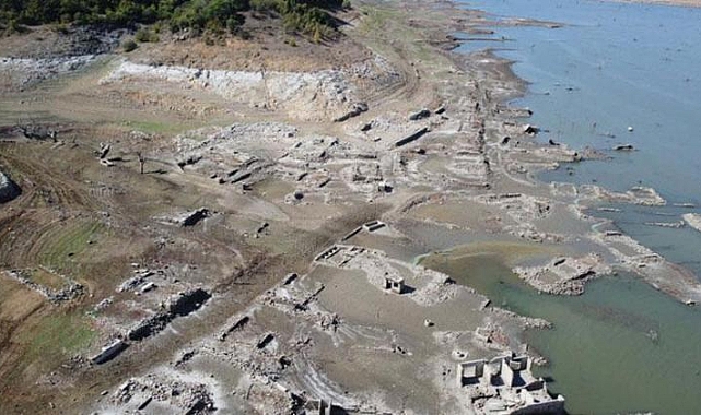 Çanakkale'nin Biga ilçesinde Bakacak Barajı'nın yapımıyla sular altında kalan tarihi Eşelek köyü, yaşanan kuraklık ve barajın sulamaya açılmasıyla düşen su seviyesi sonrası yeniden gün yüzüne çıktı.