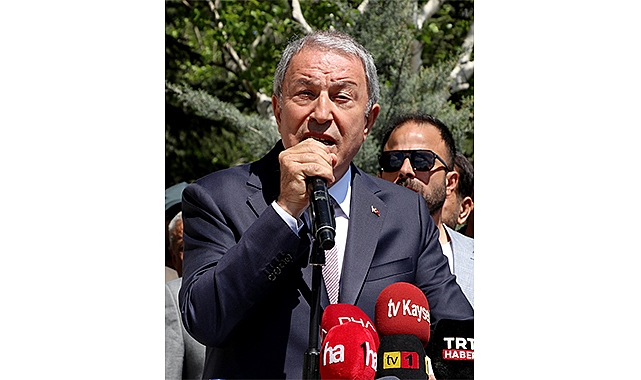 “BUNLARIN Kİ BİR ALÇAKLIK BUNLAR BEBEK KATİLİ, BUNLARDA HİÇ KURAL KAİDE YOK” Türk Silahlı Kuvvetleri’nin şehitlerimizin kanını yerde bırakmadığını ve bırakmayacağını vurgulayan Bakan Akar:” Bunların ki bir alçaklık bunlar bebek katili, bunlarda hiç kural kaide yok. Hiçbir insanlık değeri yok. Herhangi bir şekilde ahlaki değer yok. Bunlar hayvandan aşağı dolayısıyla buradaki gençlerin katlinden bu adamlar sorumlu fakat hikâyenin sonunda bunların kanları yerde kalmadı. Bunları yapanların hepsi bulundu hepsine gerekli cevap verildi. Biz şunu iddia ediyoruz. Mücadele sırasında şehidimizde olabilir gazimizde olabilir fakat bizim silahlı kuvvetler olarak iddiamız Türk Silahlı Kuvvetleri olarak takip ettiğimiz ilke hiçbir şekilde şehitlerimizin kanlarını yerde bırakmadık bırakmayacağız da. Geldiğimiz noktada şu anda teröristlerin elebaşları çığlık çığlıya panik içindeler. Efendilerinden yardım almak için gece gündüz panik içinde çığlık atıyorlar. Efendileri ne kadar yardım ederse etsin ne kadar desteklerse desteklesin bunlara ne verirlerse versinler helikopterde versinler silahta versinler, mühimmatta versinler ne verirlerse versinler dönmek yok. Teröristlerin önünde iki yol var. Ya gömülecekler ya da adalete teslim olacaklar. Bunun dışında başka yol yok. Burada bizim görmemiz gereken bir tarafta elebaşları efendilerine yardım istiyor dedik. Bir taraftan da teröristlere gece gündüz seçimleri bekleyin diyorlar. Seçimleri bir umut olarak görüyorlar. Bunu da görmemiz lazım.” dedi