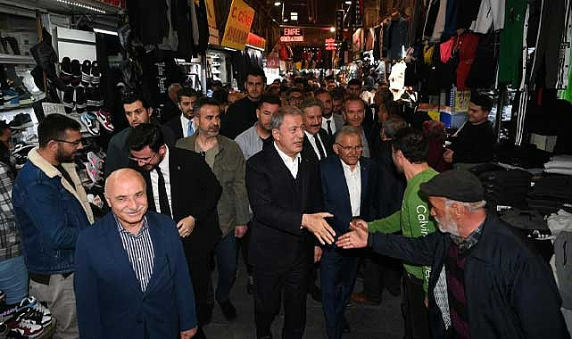 Başkan Büyükkılıç ve Bakan Akar, Kapalı Çarşı esnafı ve çarşıda alışveriş yapan vatandaşların yoğun sevgi ve ilgisiyle karşılaştı.