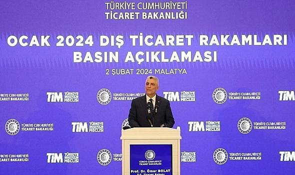 Ticaret Bakanı Ömer Bolat,'' Ocak ayının ilk 4 gününde çok az küresel sipariş olduğu halde 2024 yılı ocak ayında ihracatımız yüzde 3,6 oranında bir artış ile 20 milyar 28 milyon dolara yükselmiştir. Böylece tarihimizin en yüksek ocak ayı ihracat rekorunu kırmış olduk'' dedi.