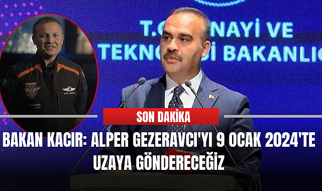 Sanayi ve Teknoloji Bakanı Mehmet Fatih Kacır, Cumhuriyet tarihinde ilk kez bir Türk vatandaşını, Alper Gezeravcı’yı Uluslararası Uzay İstasyonu'nda bilimsel deneyler gerçekleştirmek üzere 9 Ocak 2024 tarihinde uzaya göndereceklerini söyledi.