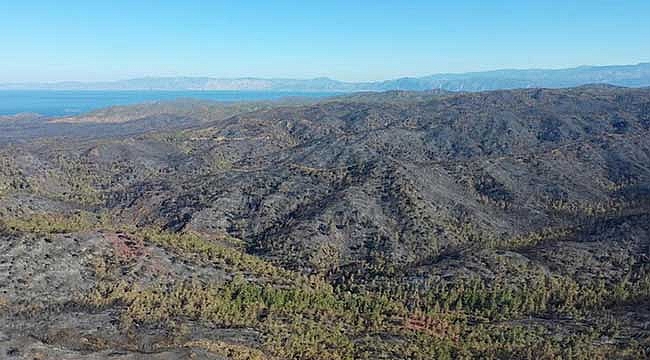 Marmaris'in Bördübet mevkiindeki ormanda, 21 Haziran'da saat 20.02'de çıkan orman yangını, gece havadan müdahalenin yapılamaması ve rüzgarın da etkisiyle yayıldı. Küfre Koyu'nda 2 benzin bidonuyla yakalanıp, tutuklanan S.A.'nın jandarmadaki itirafından, ailesiyle aralarındaki ticari husumet nedeniyle kundaklama sonucu çıktığı belirlenen yangında 5'inci güne girildi.Kızılçam ağaçlarıyla kaplı 4 bin 500 hektar alanda etkili olan yangın, kısmen kontrol altına alındı. Soğutma çalışmaları, günün ilk ışıklarıyla 3'ü Katar'dan gelen 46 helikopter ve 1'i Azerbaycan'dan gelen 15 uçakla havadan da sürüyor. Karadan ise 405 arazöz ve 2 bin 202 iş makinesi, 119 su tankeri 28 TOMA ve 1169 araç ile 1204'ü orman işçisi olmak üzere 4 bin 587 kişilik personelle çalışmalara destek veriliyor. Soğutma çalışmaları, geniş alanda sürüyor.YANAN ALANLAN HAVADAN GÖRÜNTÜLENDİÖte yandan 5 gündür etkili olan ve büyük ölçüde kontrol altına alınan orman yangınında zarar gören alanlar, havadan görüntülendi. Daha önce yemyeşil olan orman alanlarının kapkara görüntüsü, yürek burktu. Tarım ve Orman Bakanı Vahit Kirişci, dün akşam yaptığı açıklamada yanan alanlarla ilgili bilgi vererek, "Net olarak 'Burası tamamen yanmış' denilen yerlerin dışında kısmen yanmış ama içinde bölümlerin olduğu alanlar var. Yaklaşık 4 bin 500 hektar alanın yandığını söyleyebiliriz. 72 saat dolmadan bu çalışma tamamlanmış oldu" demişti.